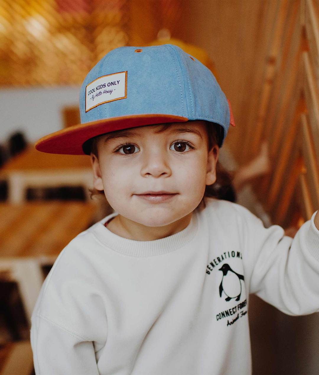 Comme son Nom l’indique – Suede Cool Blue, ce modèle est super-ultra-méga cool. Cette casquette daim, pour bébés et enfants, fait partie de nos préférences. On adore le mélange du bleu et du marron. C’est une casquette à porter sans modération et avec le sourire !